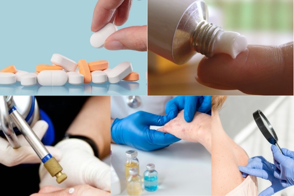 Thường thì các bệnh lý về da sẽ được điều trị bằng thuốc bôi ngoài da, thuốc tiêm dưới da hoặc thuốc uống như: vitamin, thuốc kháng sinh, thuốc giảm đau,.