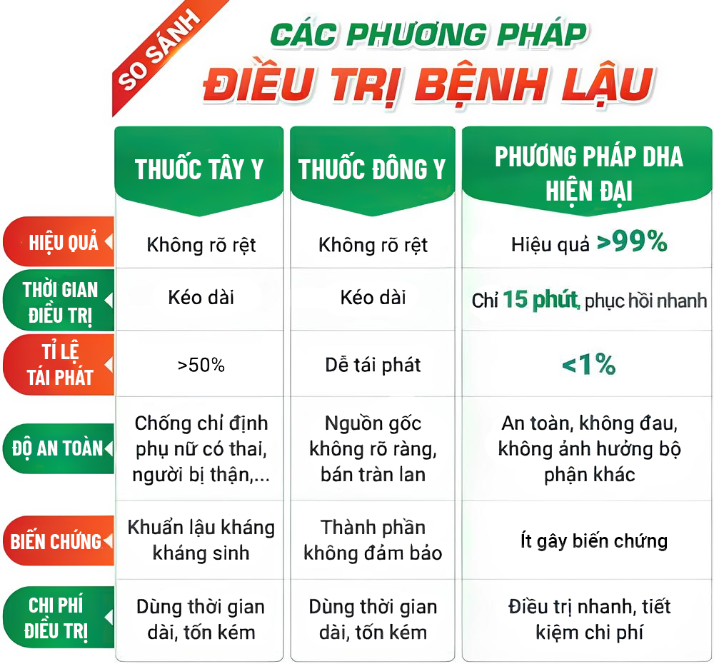 Bảng so sánh các phương pháp chữa bệnh lậu [ TƯ VẤN MIỄN PHÍ]